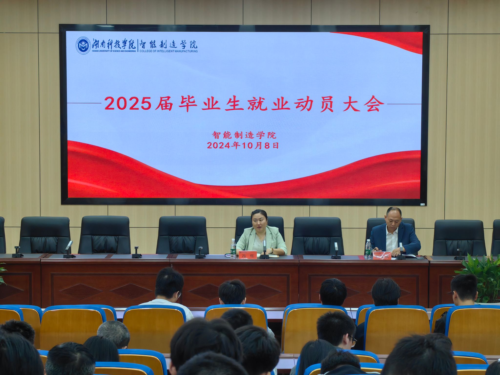 本网讯(通讯员 康平)为引导毕业生树立正确的就业观、择业观,促进毕业生高质量充分就业。智能制造学院于10月8日召开2025届毕业生就业动员大会。智能制造学院领导班子成员、招生就业与创新创业指导处副处长冯煜、毕业班辅导员和2025届全体毕业生参加会议。会议由该院党总支副书记彭涛凯主持。