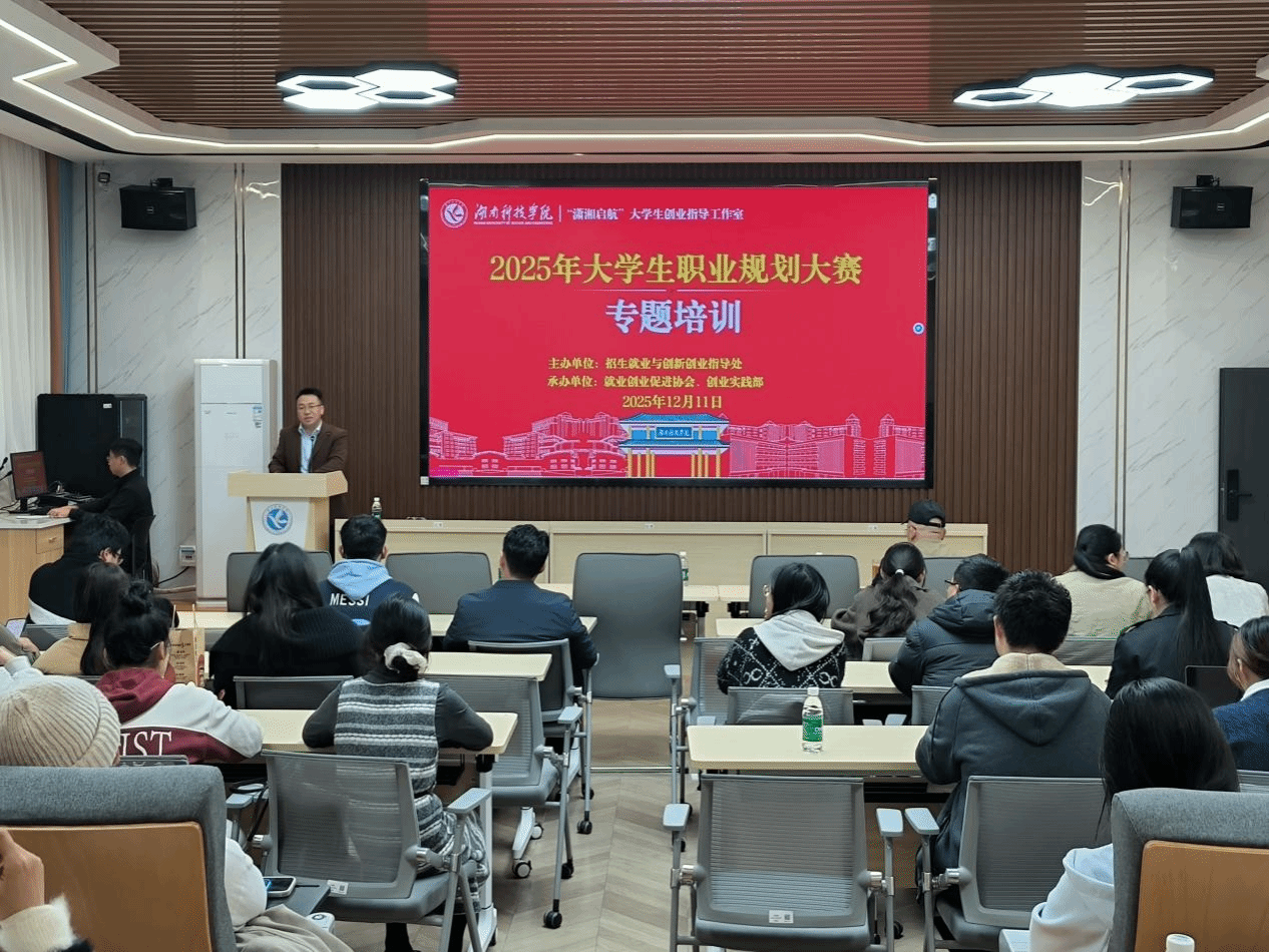 本网讯(通讯员 彭丰香)12月11日,2025年第2期大学生职业规划大赛专题培训在明理楼101教室开展。本次培训由招生就业与创新创业指导处组织,胡清华教授、赵荣生教授、指导老师及校赛晋级选手100余人参加培训。