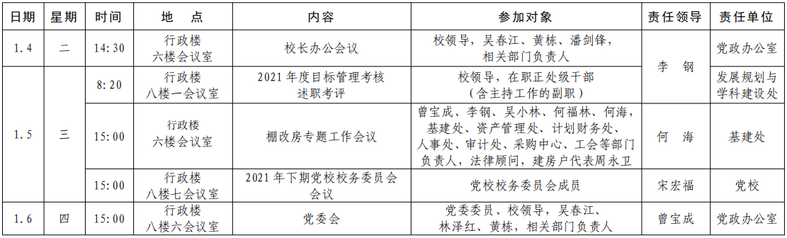 下一条:[党政办]第十八周重要工作(会议)安排 (2021 年 12 月 27 日—2022 年 1 月 2 日)